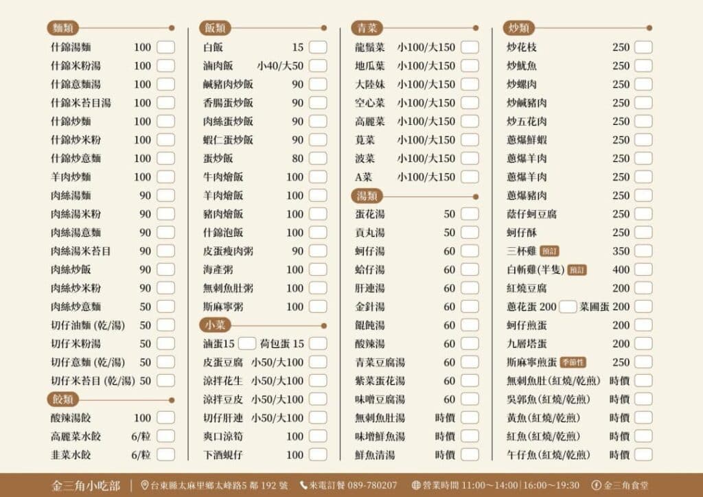 | 金三角小吃部 | 臺東縣太麻里鄉太峰路 5 鄰 192 號 |