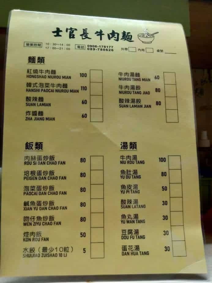 | 官網 | 點我前往士官長牛肉麵臉書 |