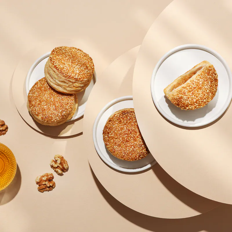 傳承百年的漢餅品牌舊振南,攜手風格鮮明的 HUGH 推出聯名之作,將經典工藝注入當代設計語彙。核桃千層酥餅以細緻層層堆疊的酥皮,包覆香氣濃郁的核桃內餡,咬下瞬間酥鬆化開,堅果油脂的溫潤在口中緩緩展開。這不只是一份糕點,更是把「家族團圓、富足圓滿」的年節寓意,用最優雅的方式傳遞。