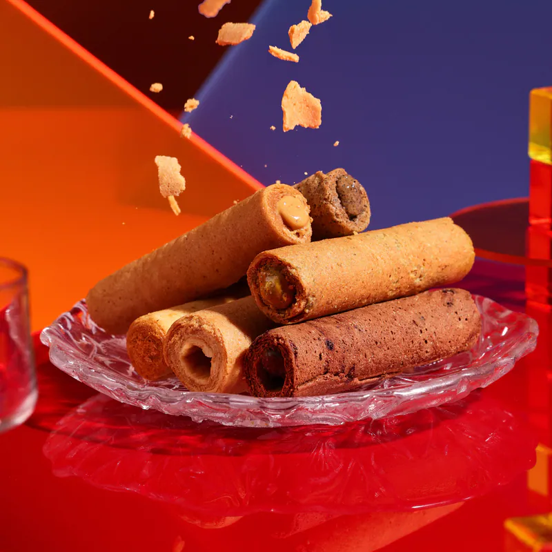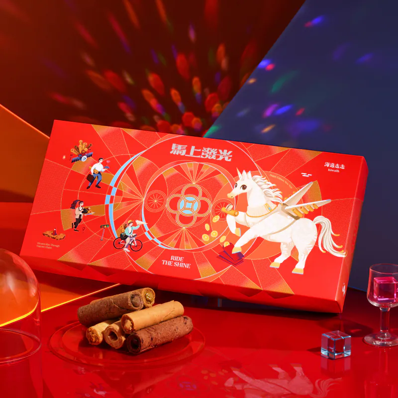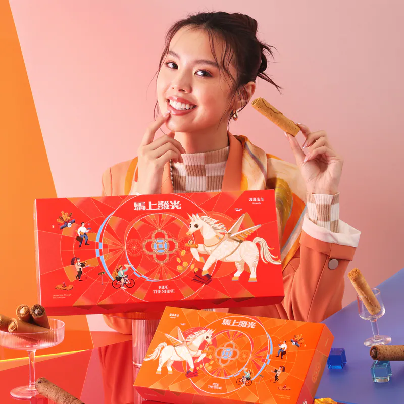 如果過年想要一點輕鬆、幽默又討喜的好彩頭,這款「海有財」蛋捲禮盒絕對是首選。海邊走走以招財諧音為靈感,將酥脆蛋捲捲起滿滿祝福。層層薄捲入口即碎,蛋香濃郁卻不甜膩,越吃越涮嘴。可愛又有記憶點的包裝設計,讓送禮不再拘謹,反而多了一份「財運滾滾來」的輕快年味。