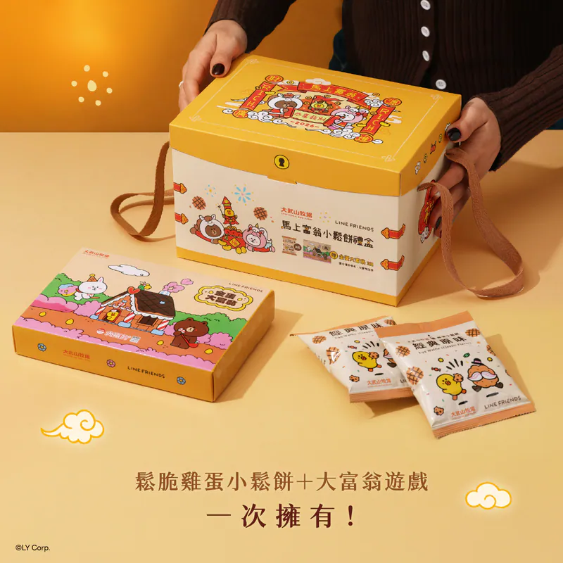 2026過年禮盒推薦 TOP 6|大武山牧場 LINE FRIENDS 馬上富翁小鬆餅禮盒